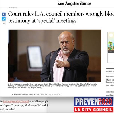 The decision represents a victory for Preven, who has long argued that Los Angeles does not comply with the provisions of the Ralph M. Brown Act, the state’s open meeting law. Preven, who serves on the Studio City Neighborhood Council, argued in his lawsuit that council members had repeatedly used a faulty legal rationale to shut down public comment.